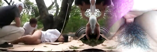 Naughty Asian femmes in prison camp with shaved pussy nailing
