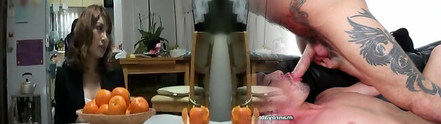 Rude redhead boss takes advantage of her submissive g/g employee by catapulting her with a strapon