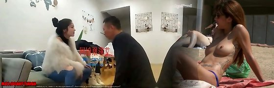 Chinese Domina being served, spanking and humiliating her couples slaves
